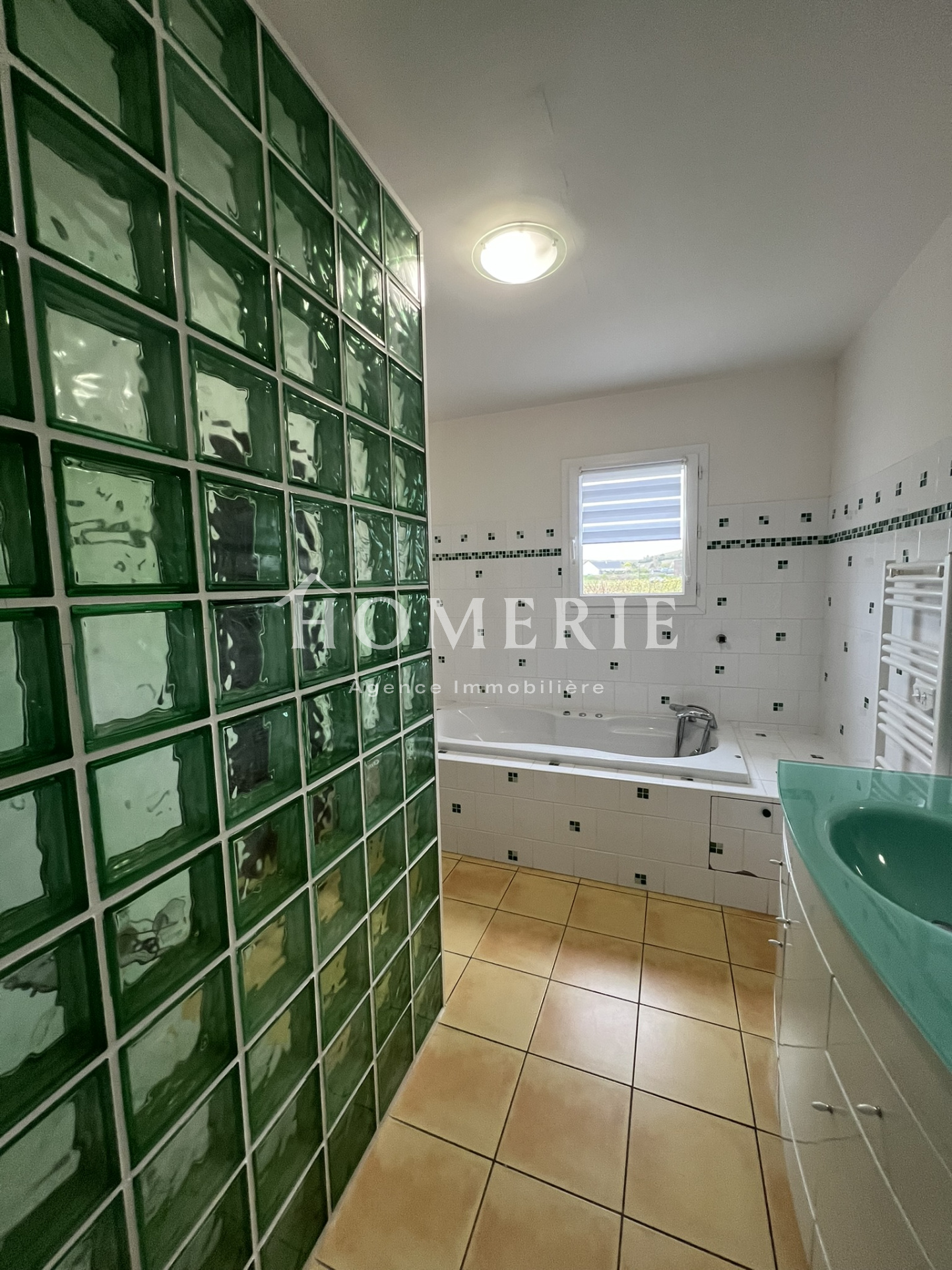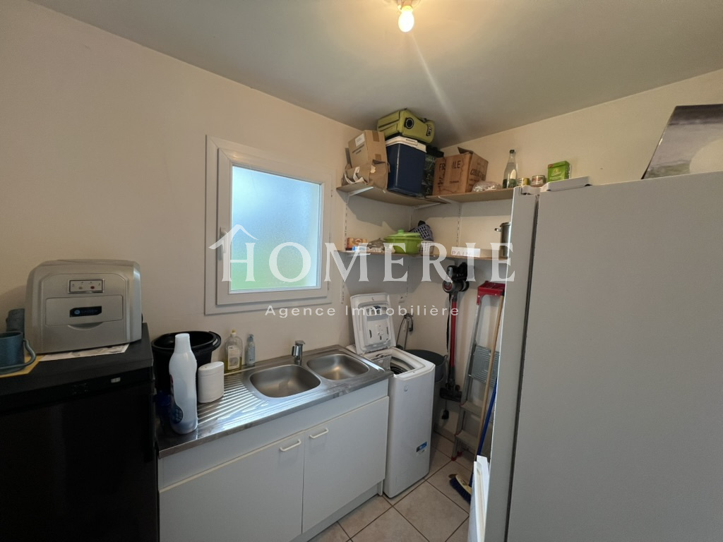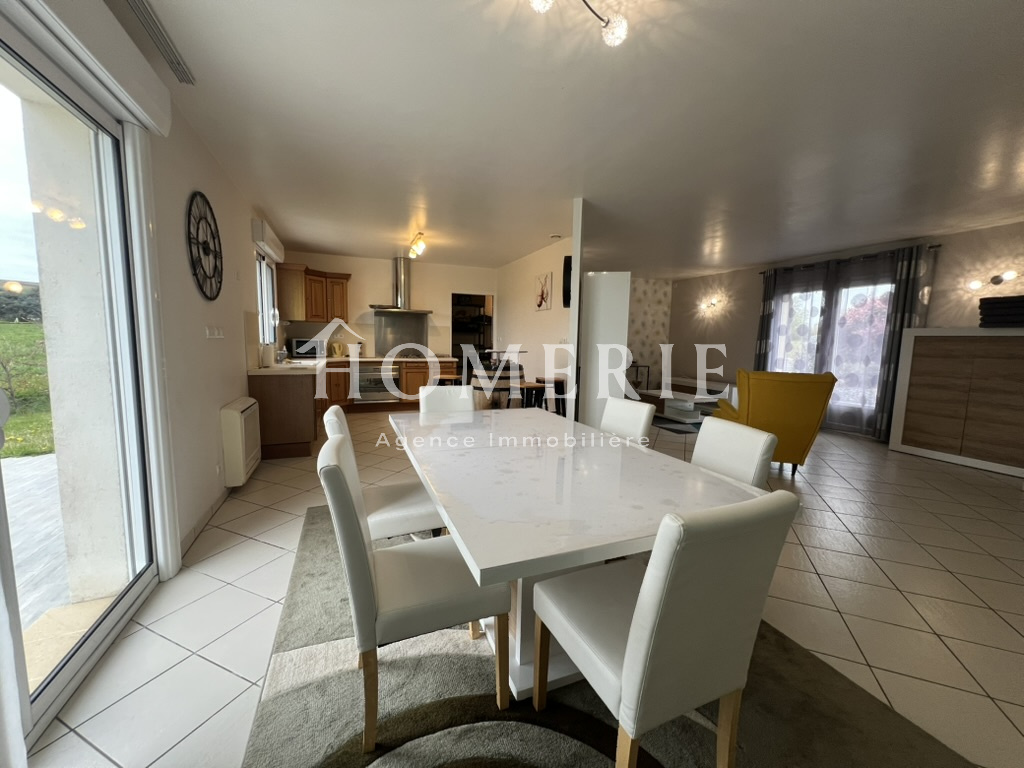 L'entrée donne accès à une lumineuse pièce de vie, composée d'un espace salon (avec conduit de cheminée permettant l'installation d'un poêle à bois), d'un espace salle à manger ainsi que d'une cuisine aménagée ouverte et équipée, avec accès à l'agréable terrasse extérieure dotée d'un grand store banne. Buanderie-arrière cuisine dans le prolongement.