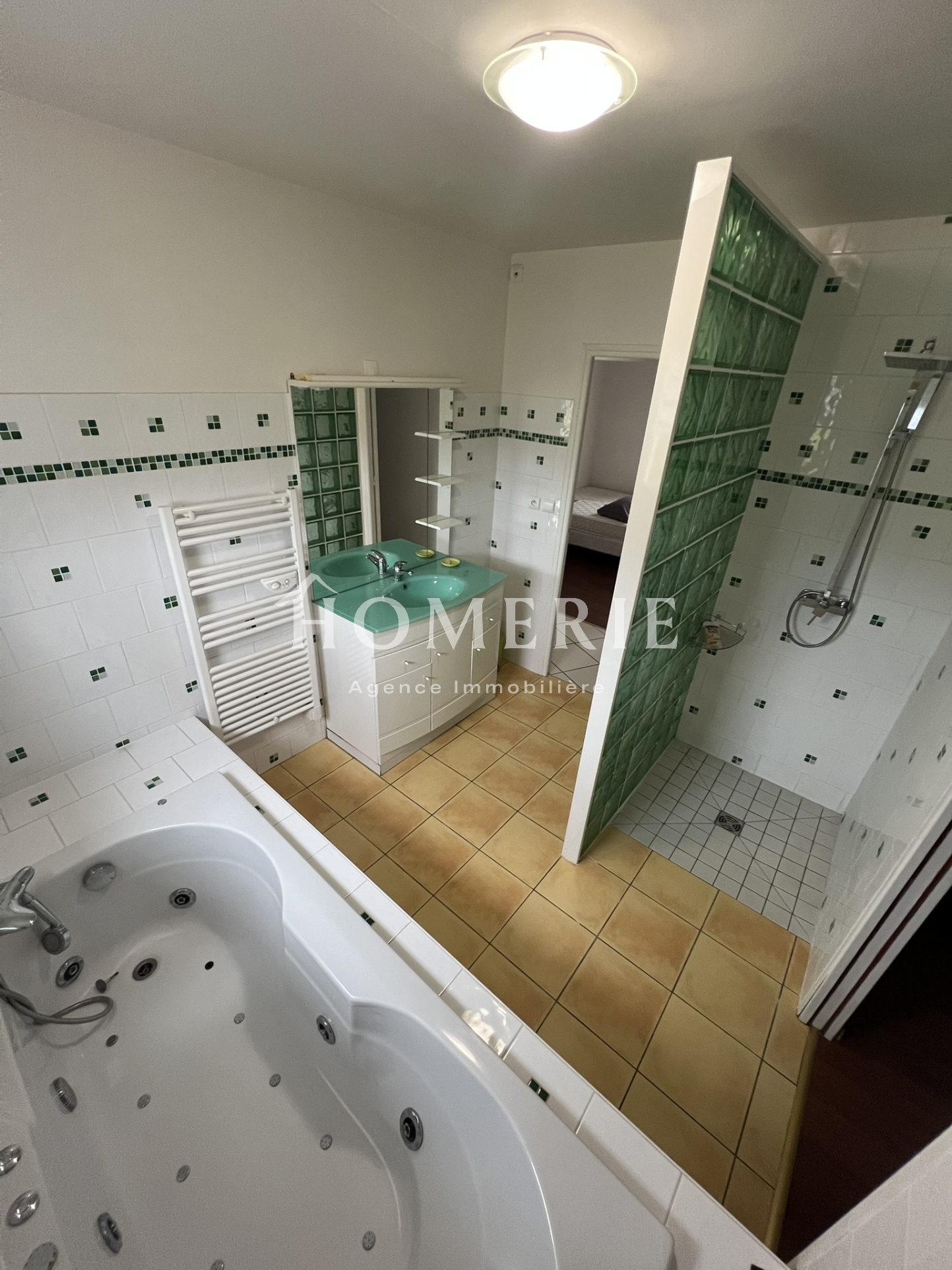 Le couloir dessert une grande chambre parentale avec son dressing et sa salle de bains et douche italienne privative. Deux autres chambres, ainsi qu'une salle d'eau et un wc complètent l'ensemble.