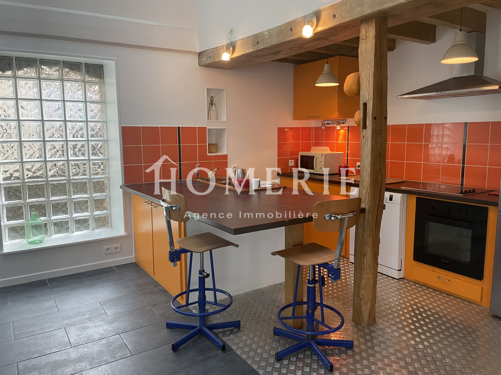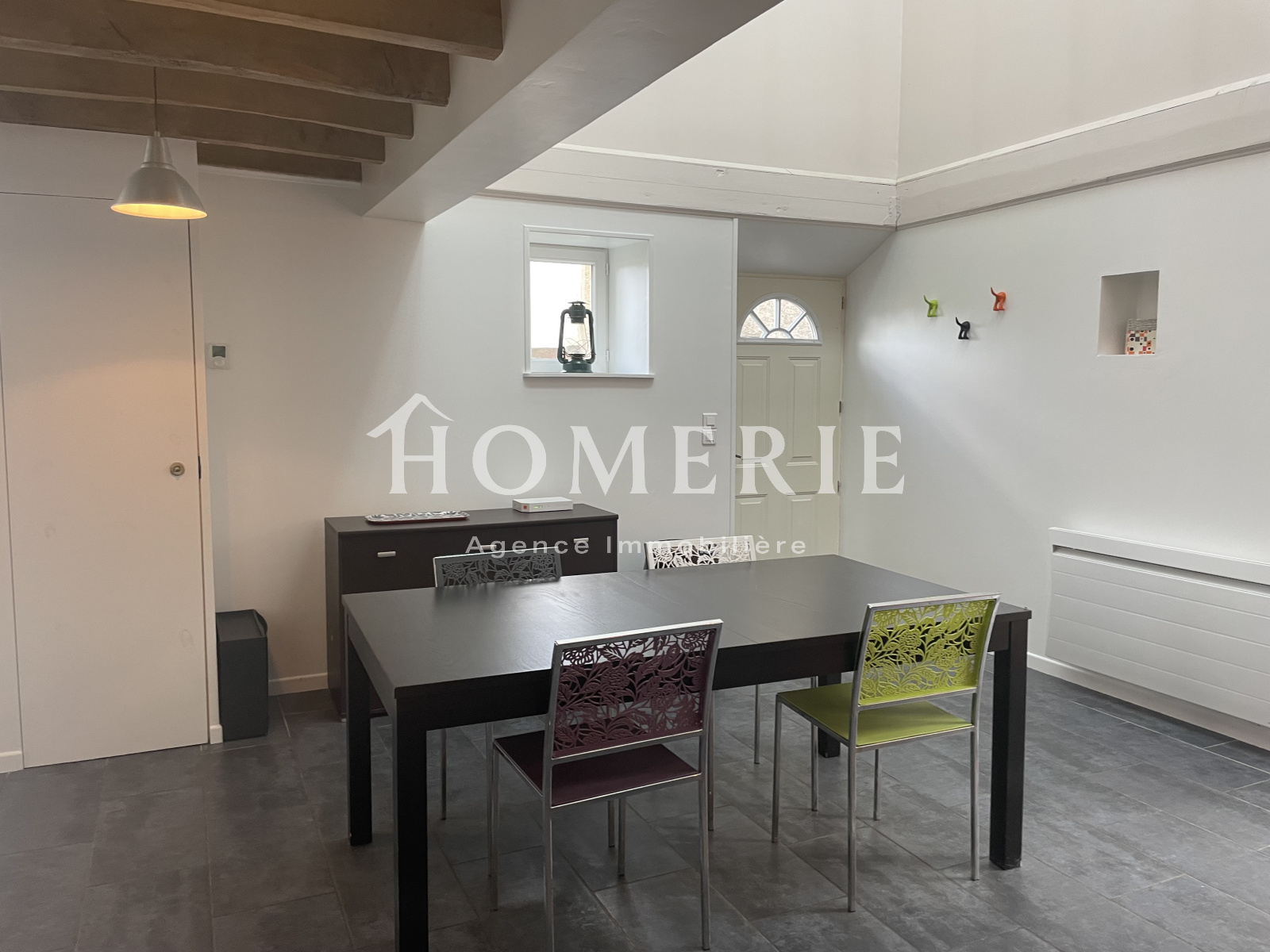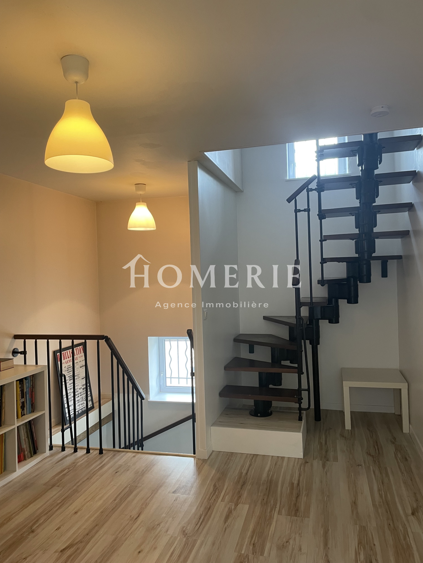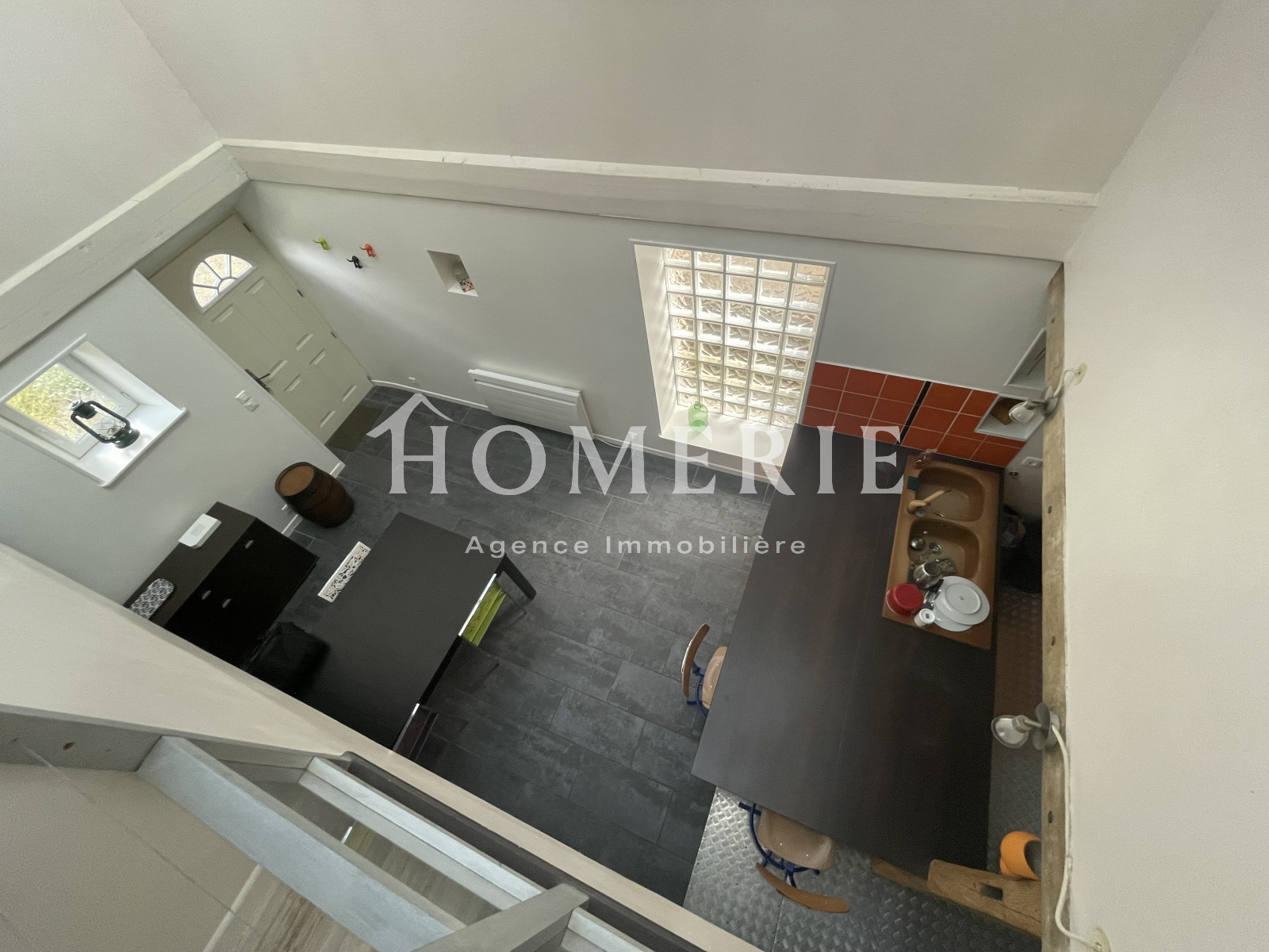Dès l'entrée vous serez séduit par le puit de lumière et la hauteur de plafond, donnant sur une cuisine ouverte et équipée avec espace salle à manger, wc.