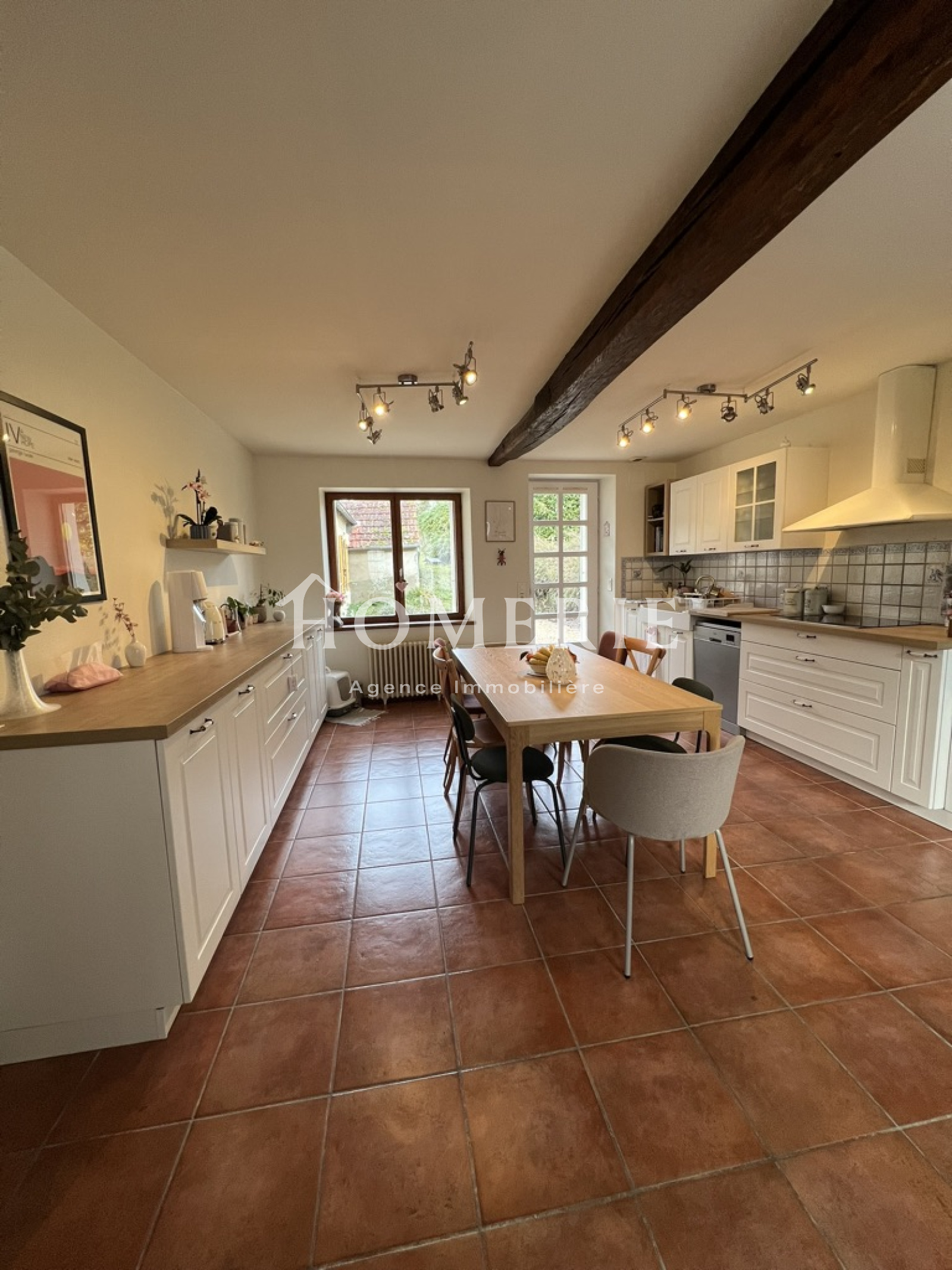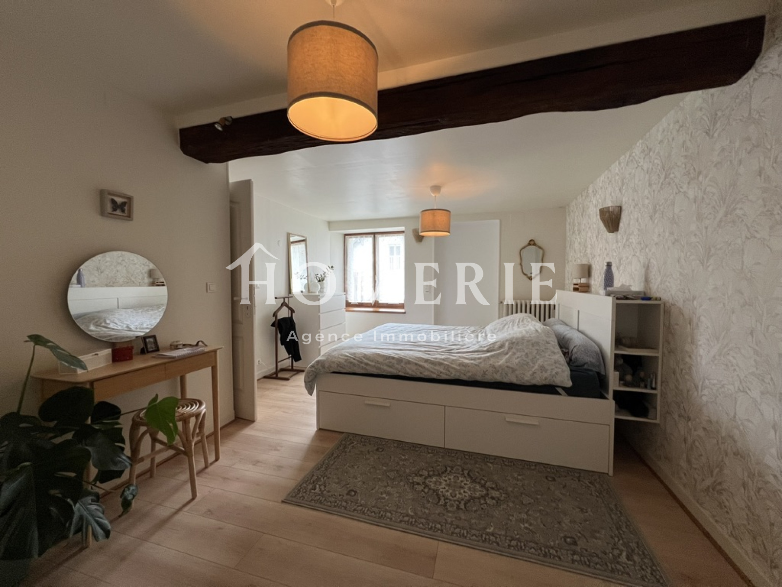 Le rez-de-chaussée se compose d'une cuisine aménagée récente de plus de 27m2 avec accès à la terrasse extérieure, d'un lumineux salon-séjour de près de 34m2 avec poutres apparentes, couloir desservant une salle de bains avec wc, baignoire et douche, deux chambres, une salle de jeux ainsi qu'une spacieuse chambre parentale avec dressing et wc d'environ 23m2, une pièce supplémentaire à usage de bureau ou autre. De l'autre côté, une quatrième chambre avec salle d'eau indépendante.
