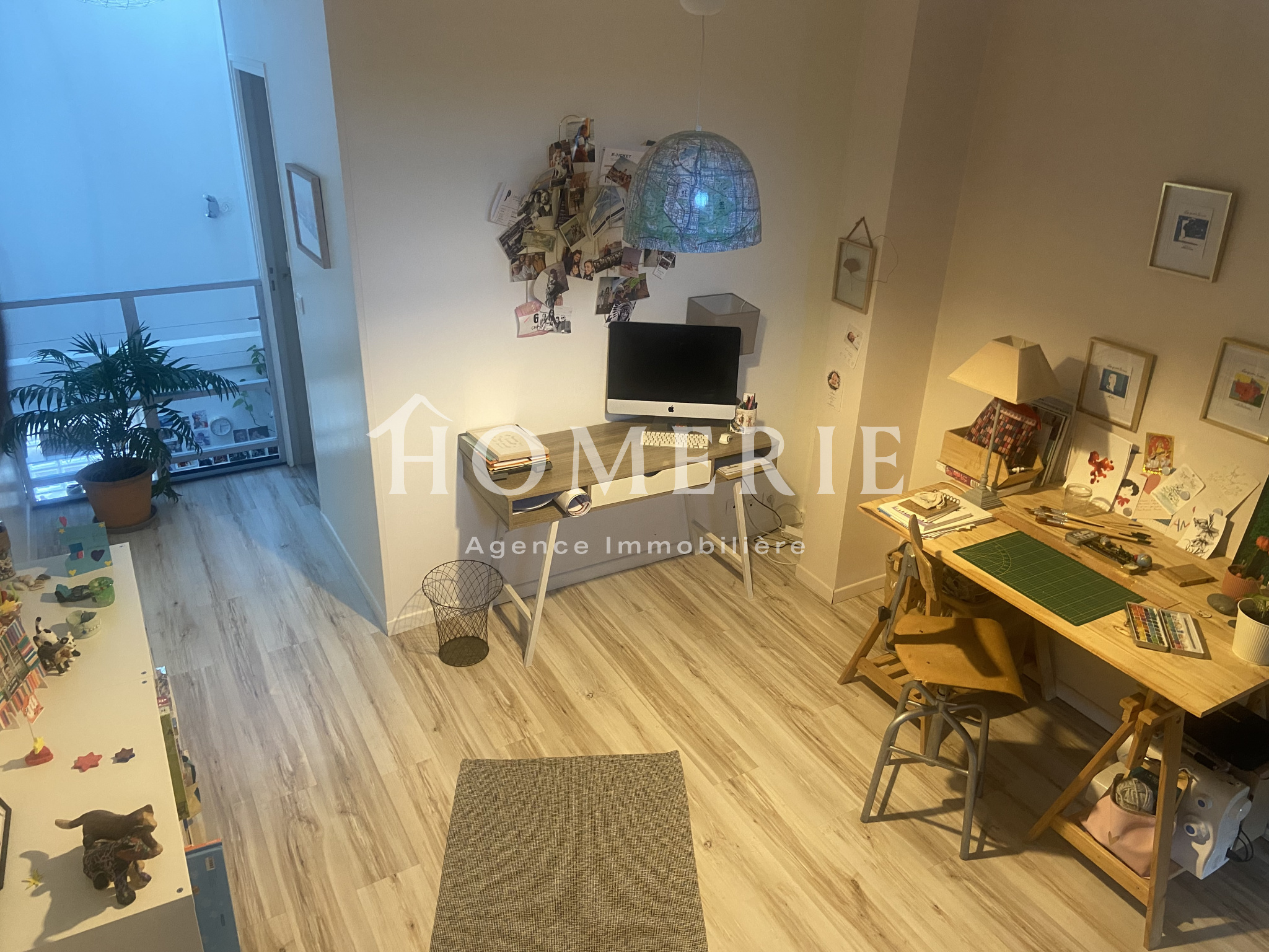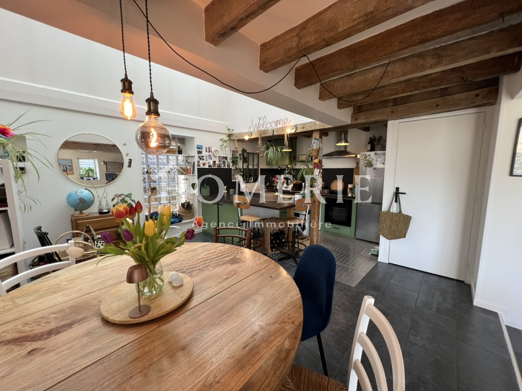Dès l'entrée vous serez séduit par le puit de lumière et la hauteur de plafond, donnant sur une cuisine ouverte et équipée avec espace salle à manger, wc.