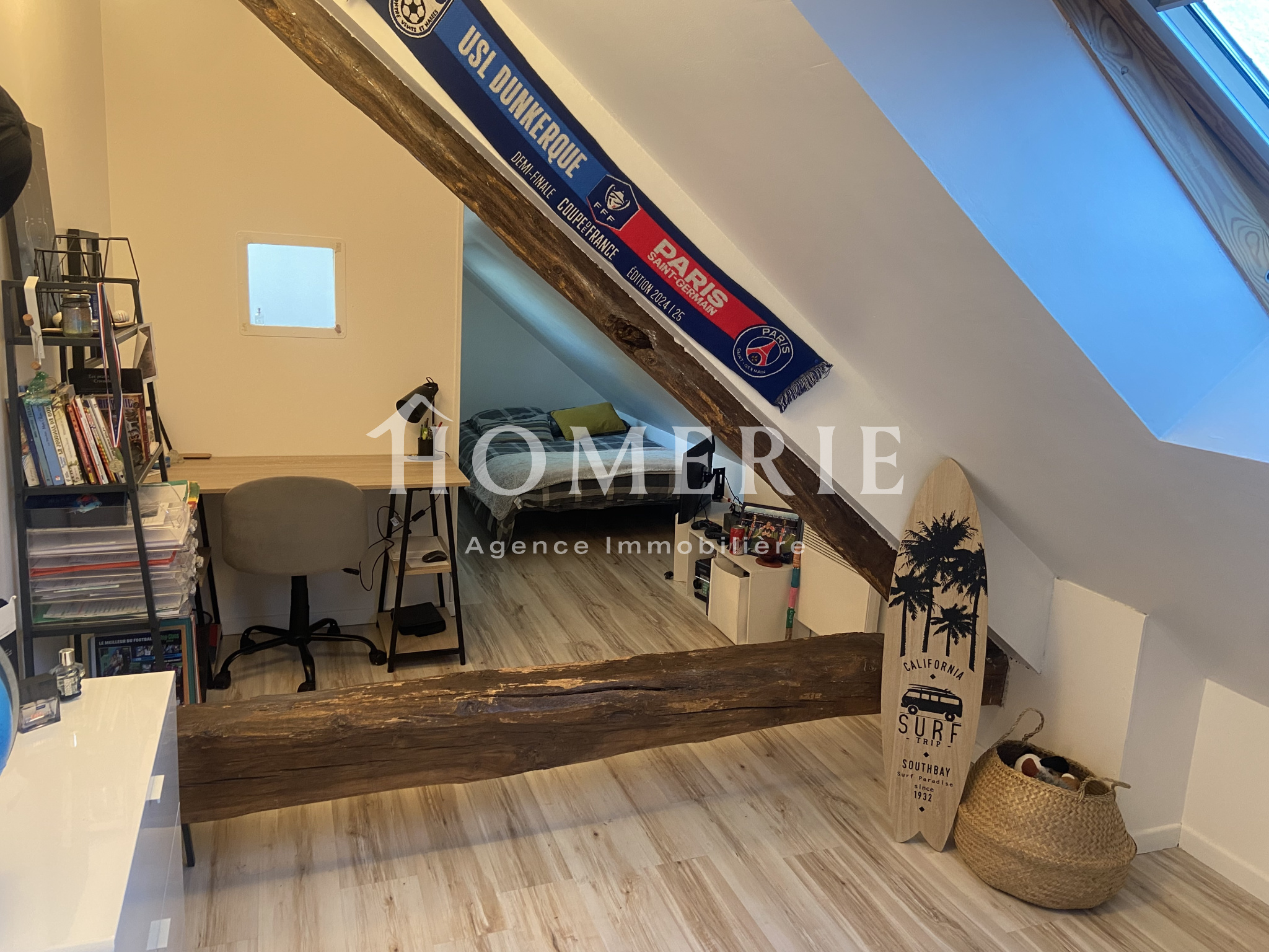 Au deuxième étage, palier avec deux pièces mensardées (chambres, bureau, salle de jeux...).