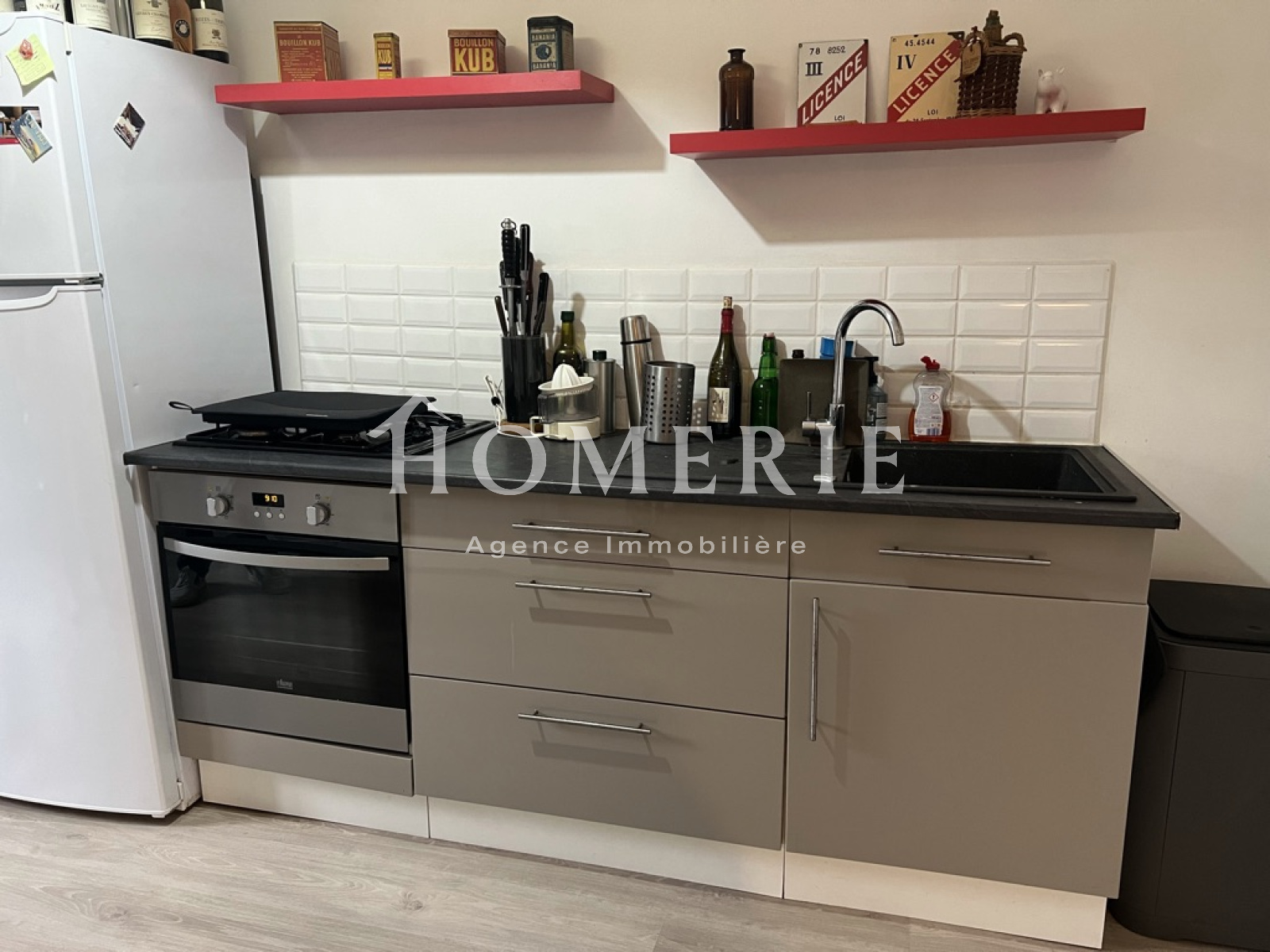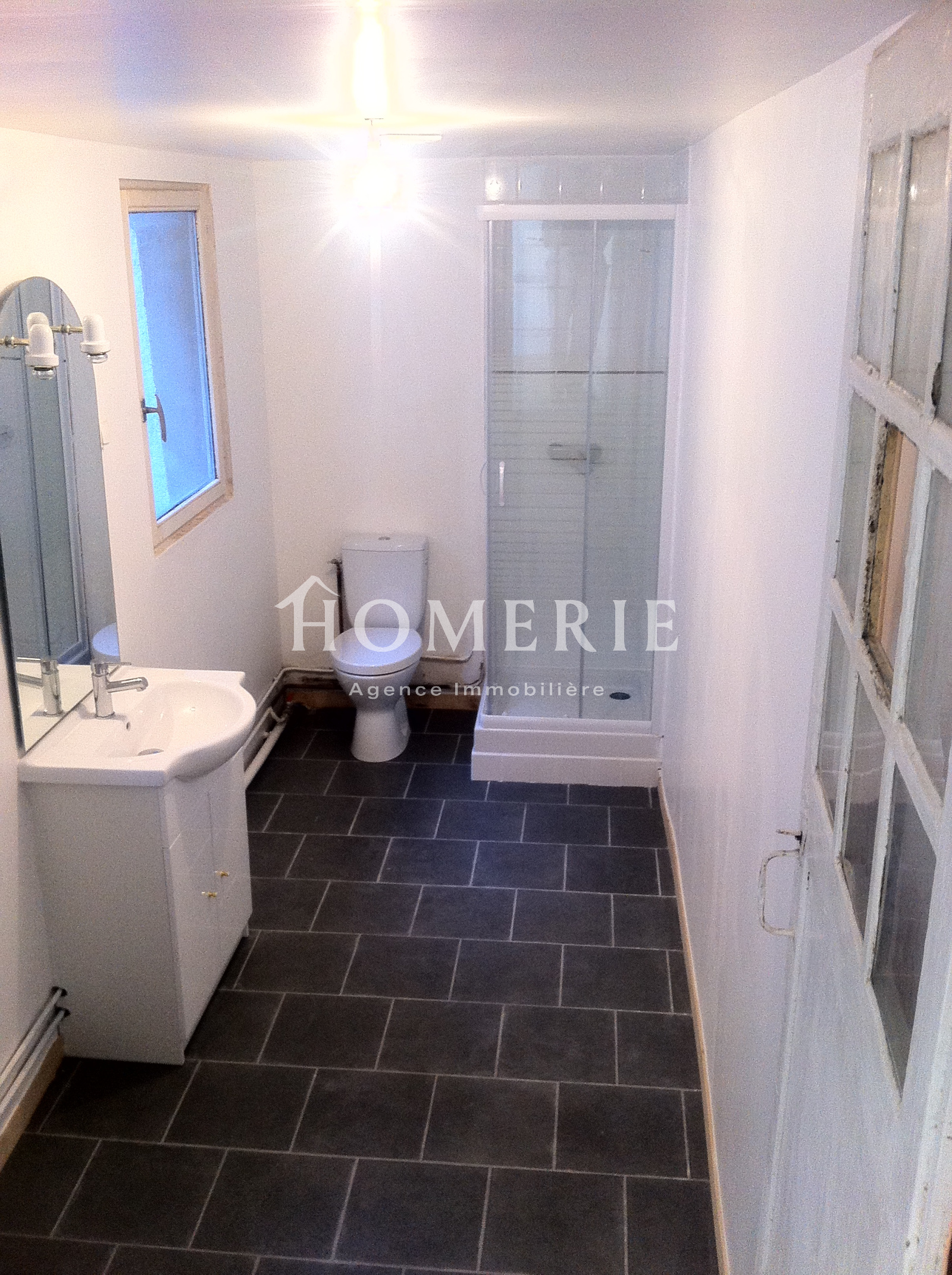 Le premier étage se compose d'un second appartement comprenant une entrée, salon ouvert sur cuisine aménagée, une chambre et une salle d'eau avec wc. Loué moyennant un loyer mensuel de 320,00 euros/mois.