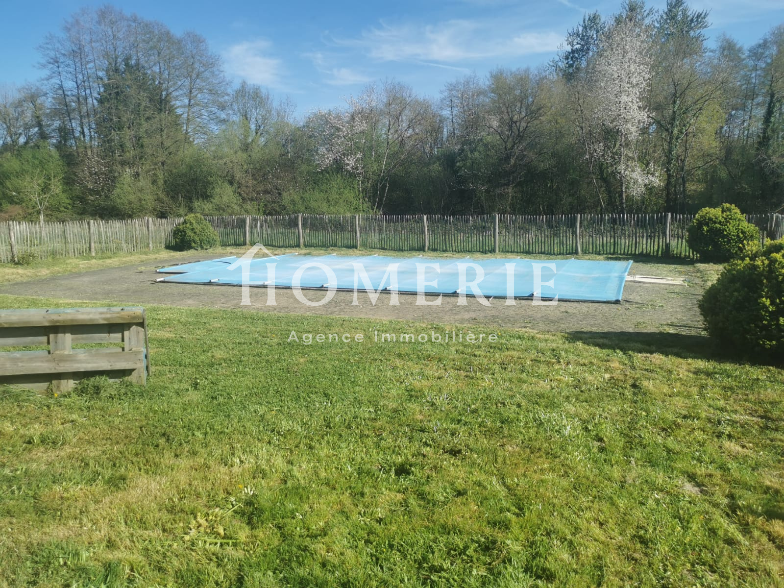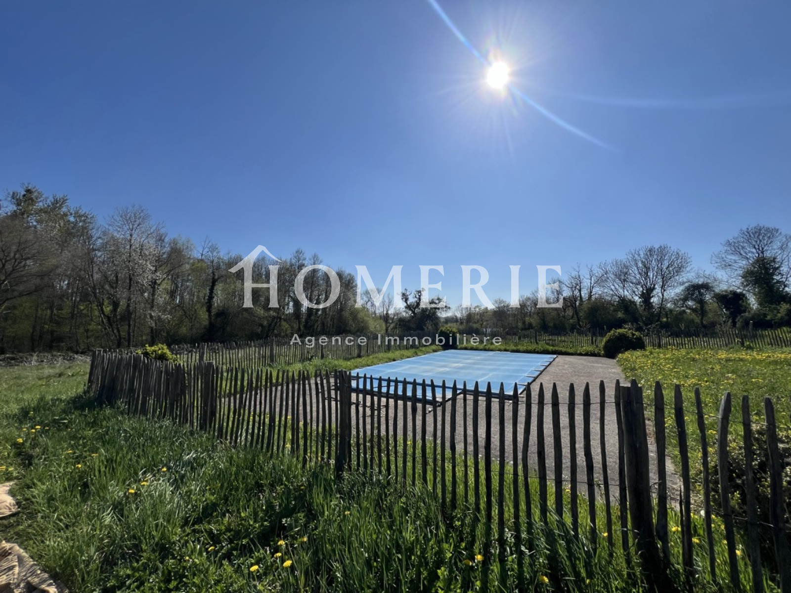 En face du bâtiment principal, une dépendance avec grenier au-dessus et sa piscine chauffée 9x4,5m (pompe à chaleur récente). Une seconde dépendance sur le côté restant à renover.