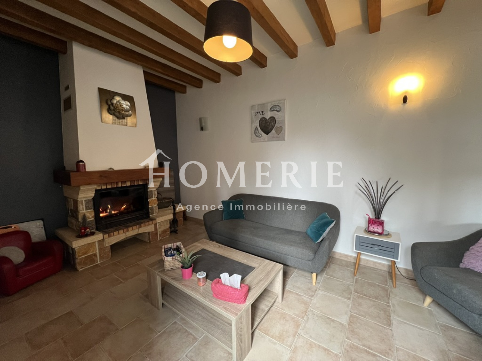 Le rez-de-chaussée se compose d'une cuisine aménagée, d'une salle à manger - salon avec insert bois, d'un couloir desservant une chambre, une salle de bains et douche, wc et d'une chaufferie.