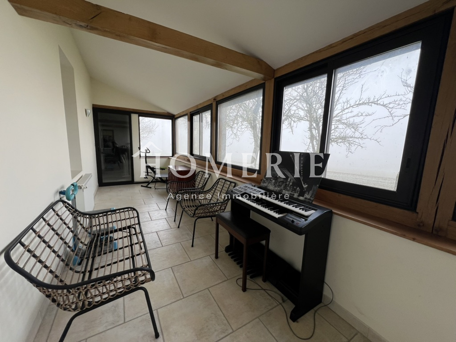 Agréable et lumineuse véranda sur l'arrière de la maison.