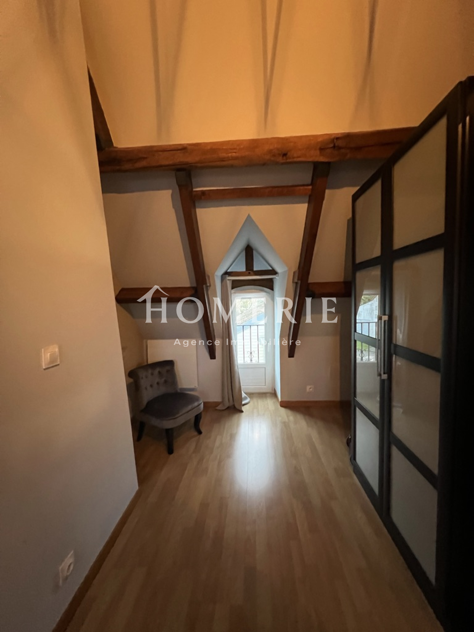A l'étage, une spacieuse chambre avec salle d'eau et wc d'environ 30m2.