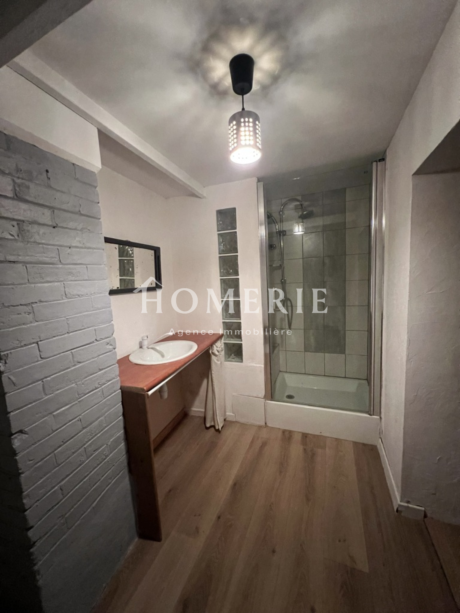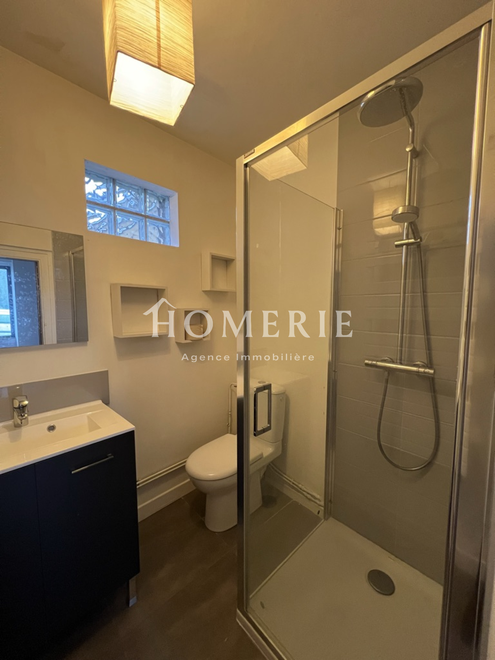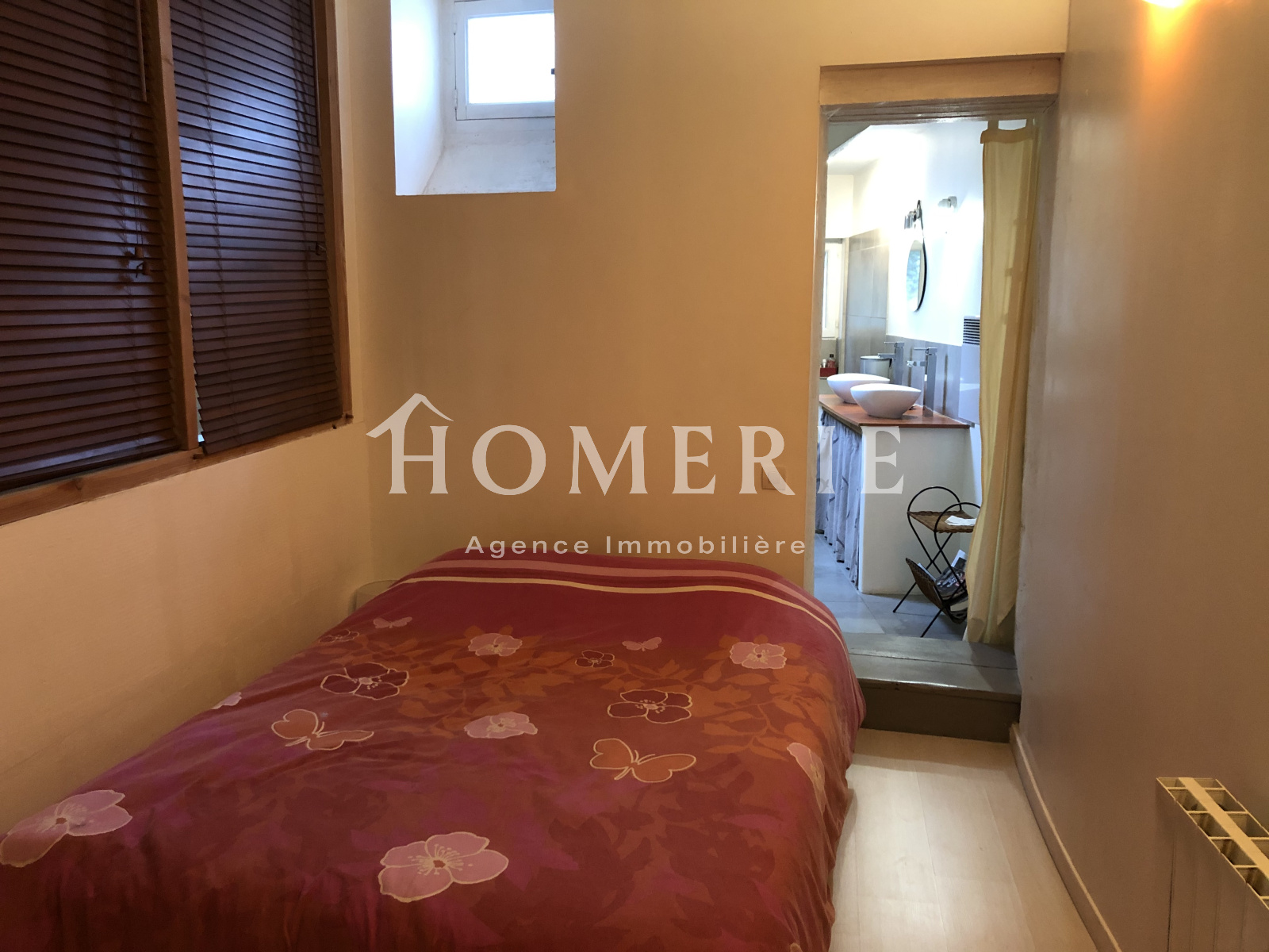 Au rez-de-jardin, une spacieuse chambre avec salle d'eau privative. Accès à une courette extérieur et à la cave.