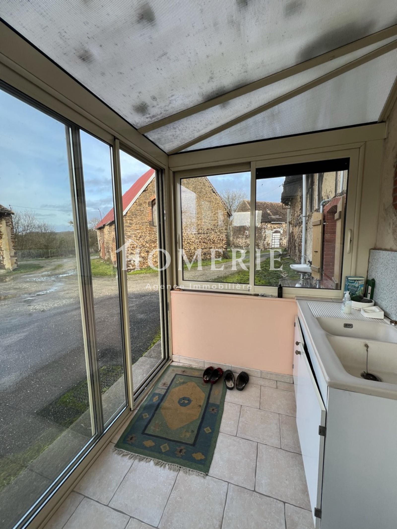 Il se compose d'une longère avec une partie habitation comprenant une pièce de vie, deux chambres, un bureau, une salle d'eau et un wc. Dégagement et véranda.