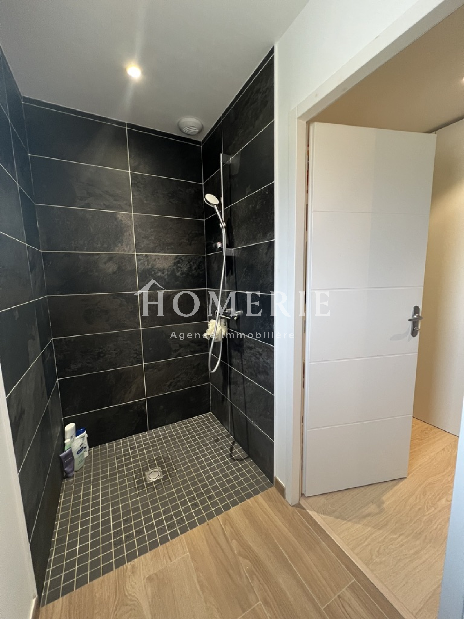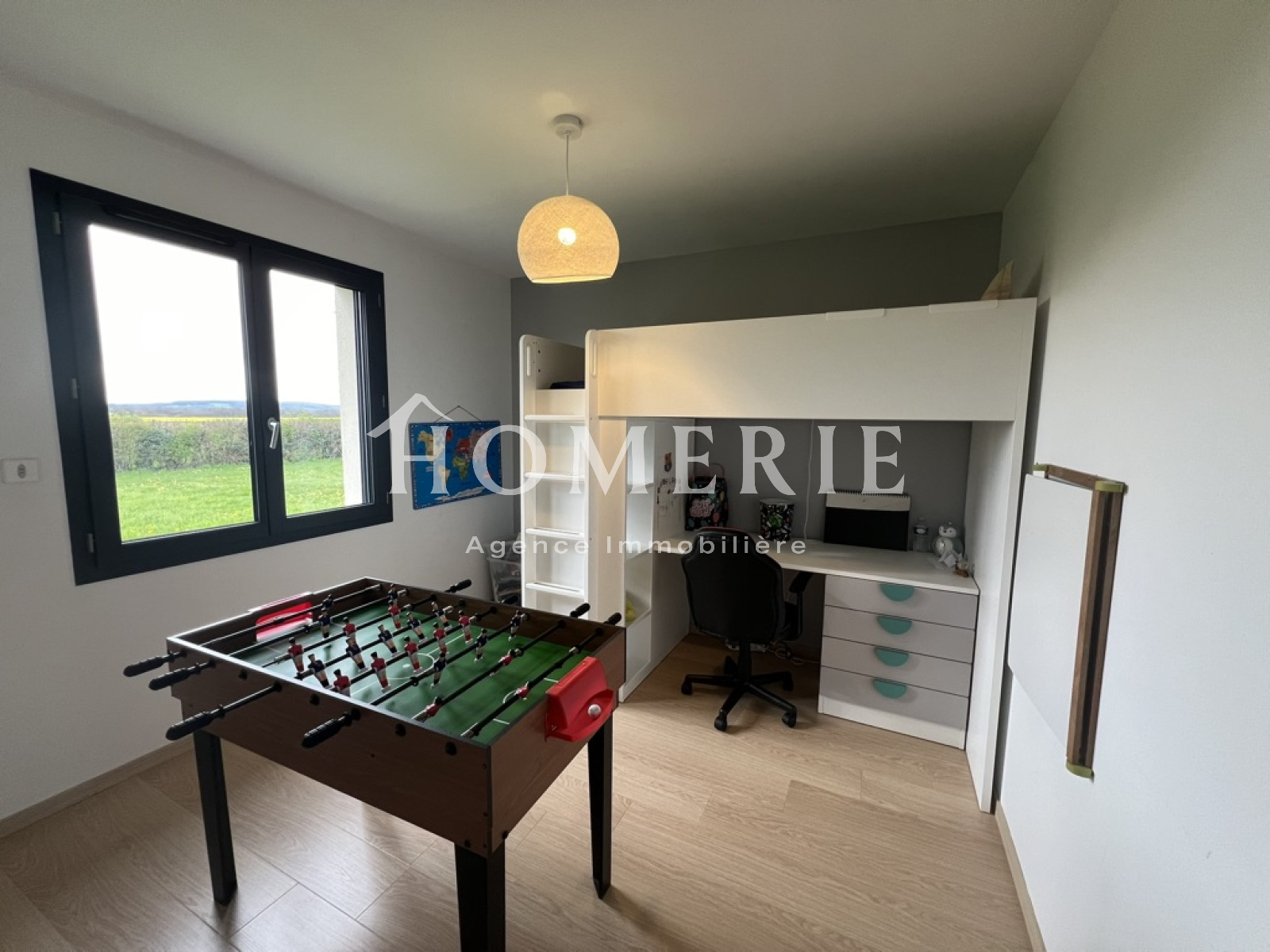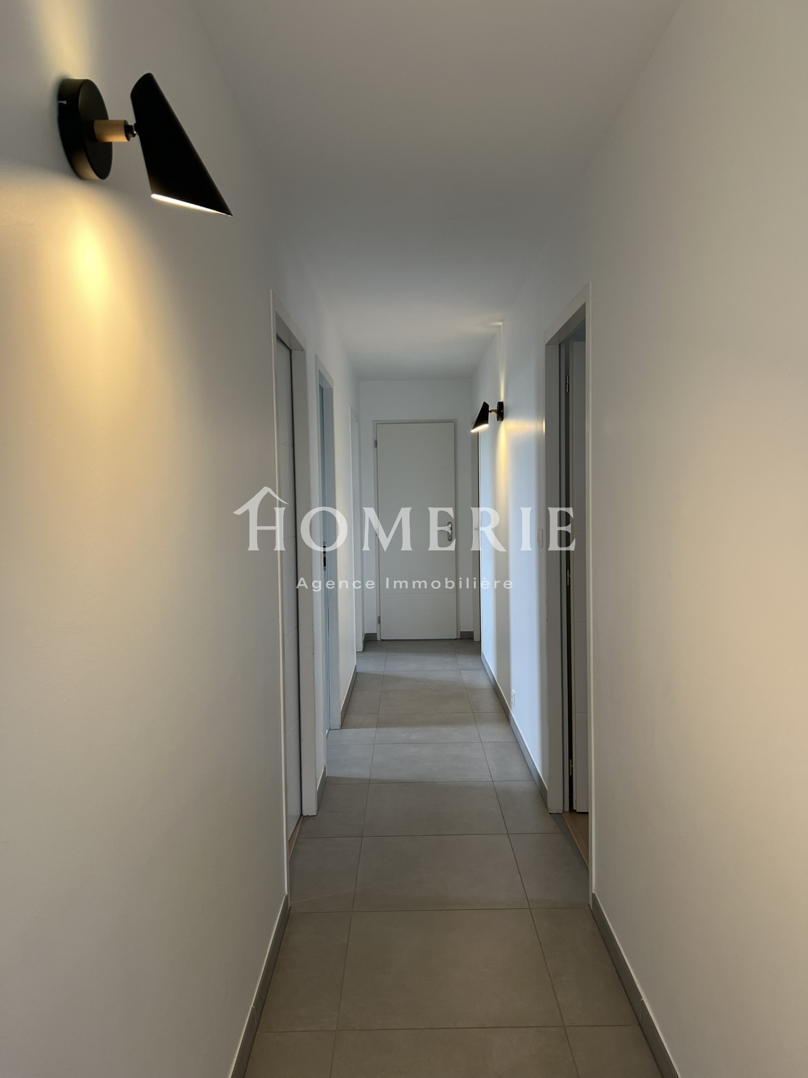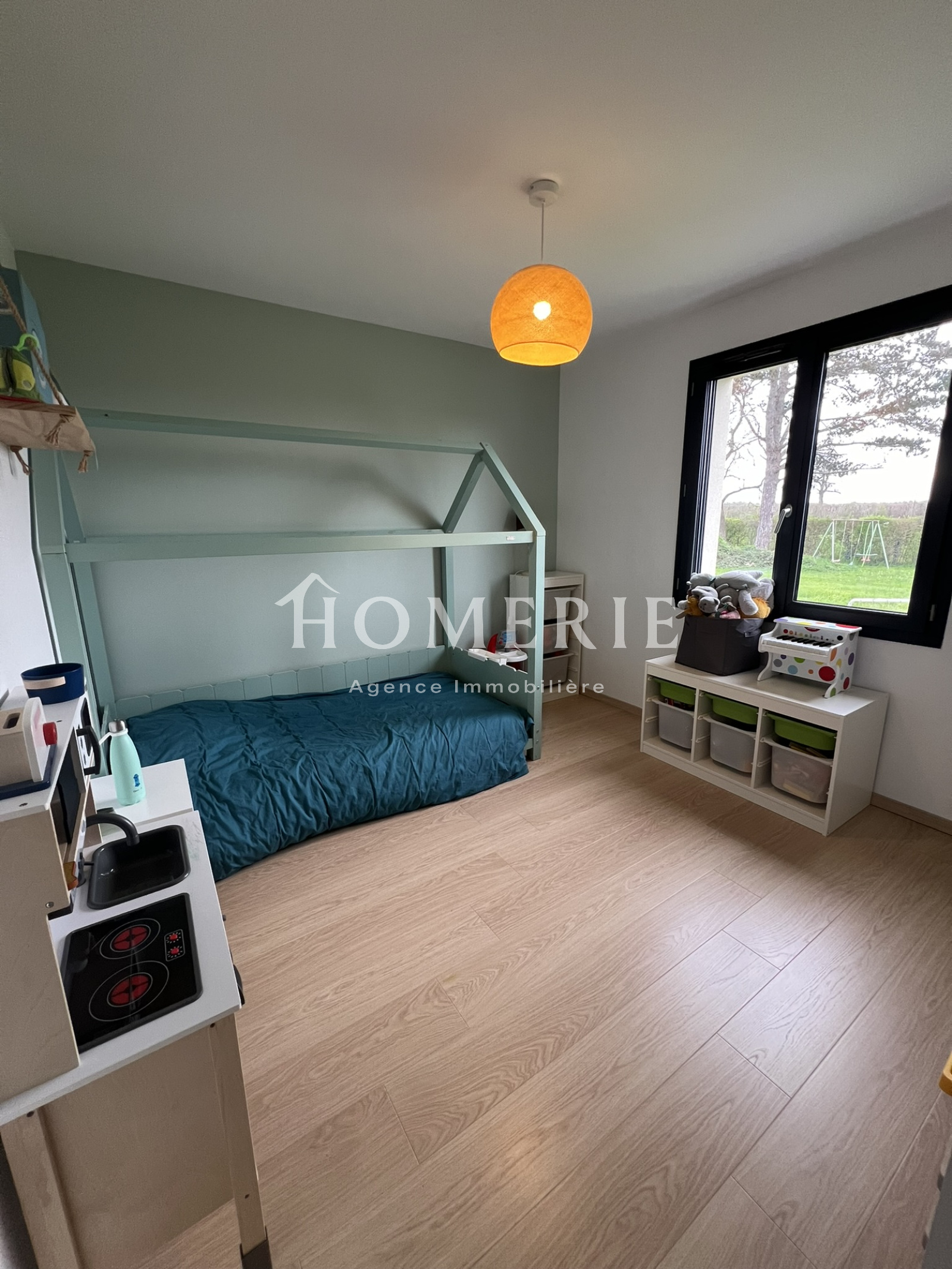 Cette construction achevée en 2019 dispose d'une entrée avec placard de rangements, d'un lumineux salon-salle à manger avec de grandes baies vitrées donnant accès à la terrasse extérieure couverte, d'une cuisine aménagée entièrement équipée avec son îlot central, d'une arrière cuisine avec espace buanderie et wc.