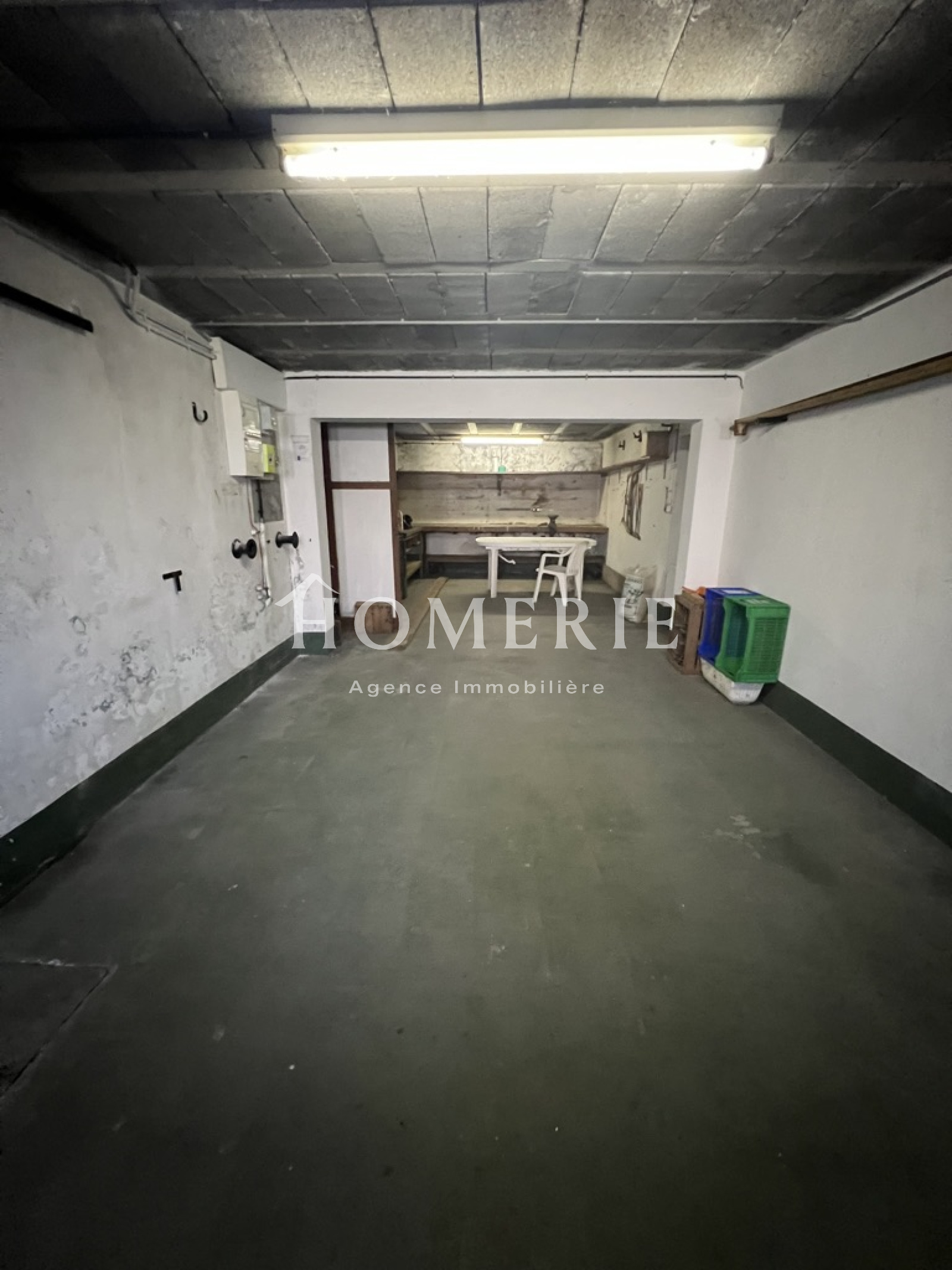 Grand sous-sol comprenant un espace garage atelier, deux caves, une chaufferie et une pièce chauffée pouvant être aménagée.