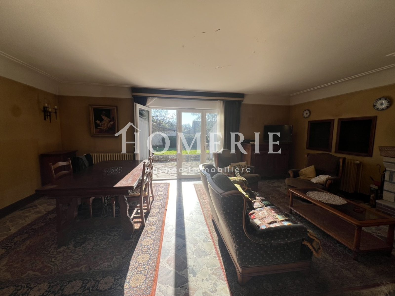 Le rez-de-chaussée surélevé se compose d'une grande entrée, d'un vaste salon-salle à manger d'environ 30m2 avec insert bois, d'une cuisine aménagée, d'un couloir desservant trois chambres de belle superficie (13,5m2 - 14m2 et 17m2) dont deux avec dressing de rangement, un wc et une salle de bains. Grenier aménageable.