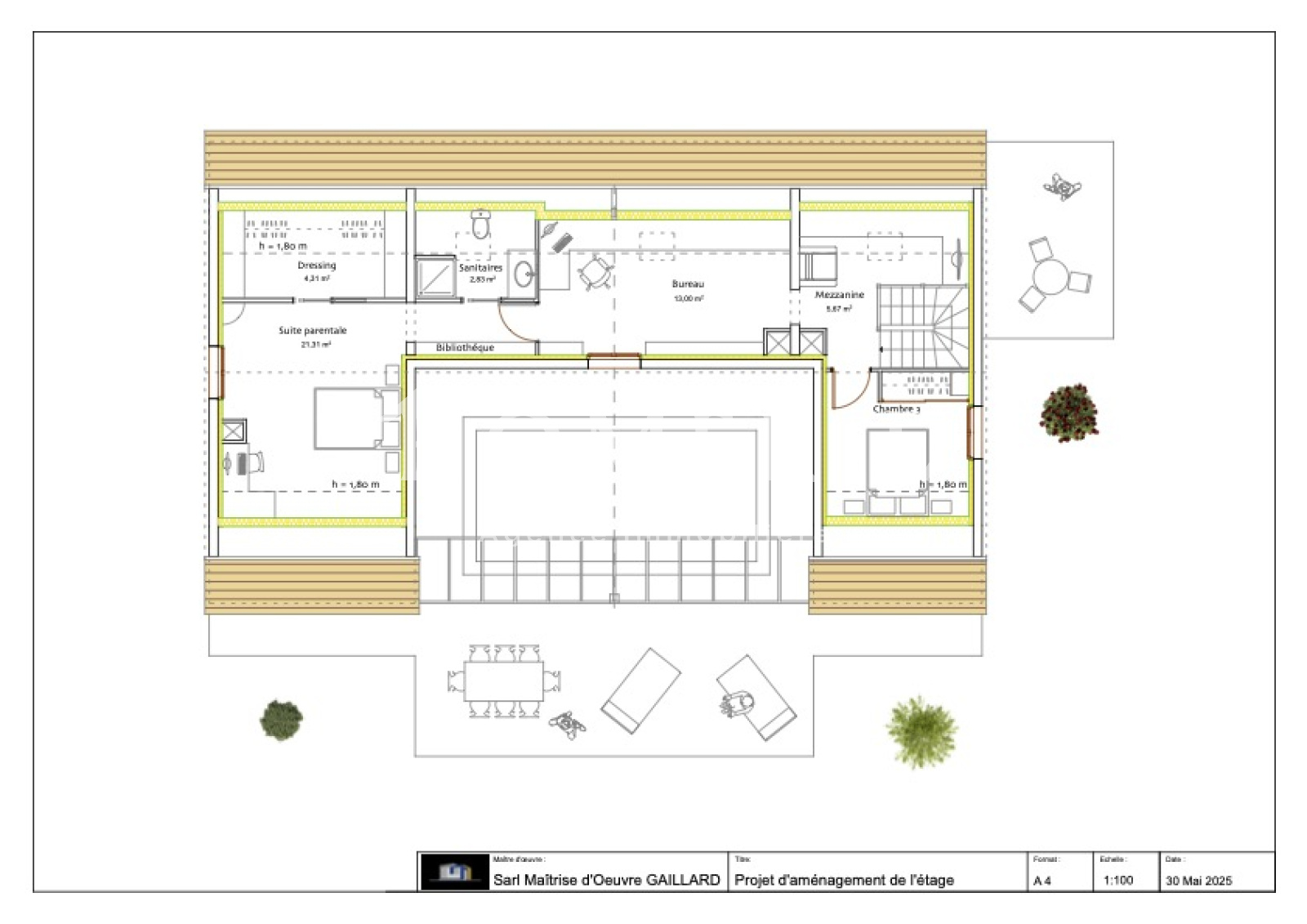 Le premier étage se compose d'un vaste palier-bureau ouvert, de deux grandes chambres ainsi que d'une salle d'eau avec wc.